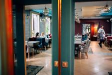 Ресторан предлагает вашему отдыху несколько залов с разной тематикой: зал Потоцких, музыкально-поэтический зал, бар / хоспер, уютная терраса, а для младенцев предусмотрено кресло для кормления, для детей есть уголок для игор.