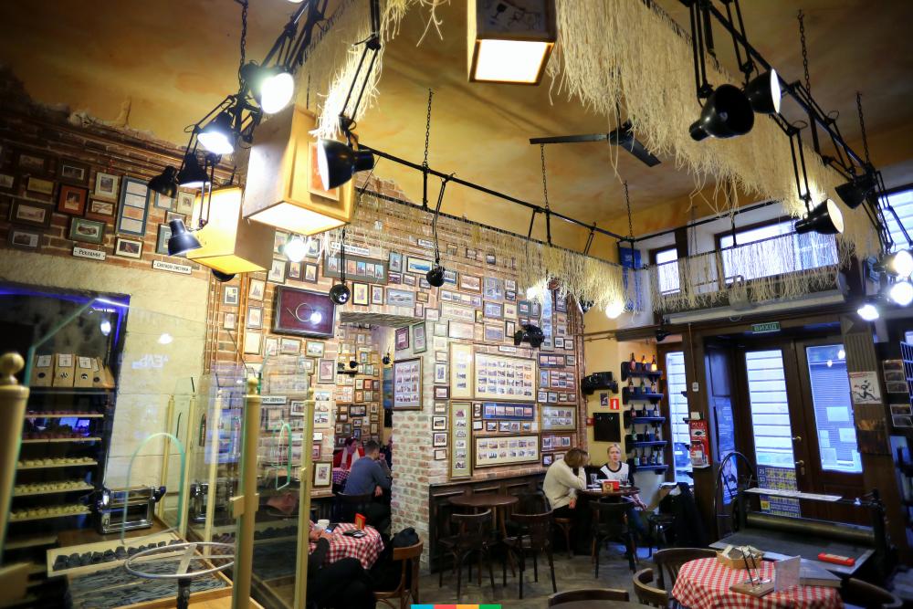 Здесь собрана самая большая коллекция львовских открыток как один из способов фиксации истории города. Кухня расположена за стеклом, поэтому посетители могут наблюдать за процессом приготовления пирогов, которые являются основным блюдом в заведении. Ко всем пирогам есть приложение-соус, сладкий или соленый. Среди напитков здесь можно разливное крафтовой пиво, глинтвейн, чай и кофе, наливки.