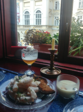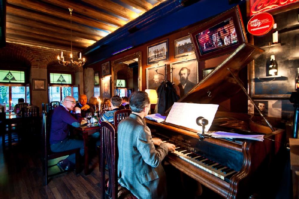 Дуже цікавий ресторан. Потрібно постукати в двері і тобі відкриє дядечко в халаті і відразу відвідують думки, що ти постукав до кого-то в квартиру і думаєш як-би втекти і вибачитися. Цей доданок проводить вас в ресторан. Перше враження здивування. Як можна платити стільки грошей за страви, але погуглити відгуки розумієш, що потрібно відняти нуль. Ми замовили пиво, сік, сало, крем-суп з цибулею-пореєм і з копченим лососем, домашню пасту з курячої гомілкою. Все дуууже смачно, ми дуже сподівалися, що сало буде тоооненько нарізано, так і сталося (нам не було достатньо хлібця і він був трохи підгорів, тому половину сала ми не доїли). Суп смачний, добре приготований, подається в чашці і звичайно ж дуже смачна локшина і м'яка гомілку. Рахунок вийшов близько 400 грн. Туалет-трон, але дуже темно, я навіть не могла знайти рушників для рук або сушарки, тому що нічого не було видно. Офіціант сумний і ми пересіли з одного місця біля вікна на інше, тому що там літали 2 жирненькие мухи (але це ж сили природи, ми понімаем)