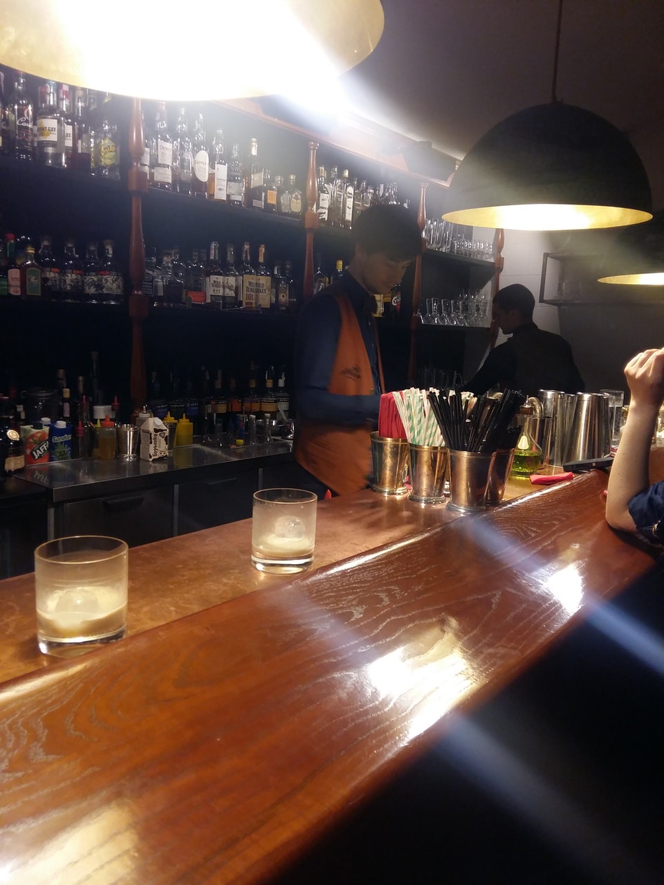 Атмосфера, обслуживание, музыка - все отлично. Авторские коктейли - офигенные. Из минусов - дороговато и в пятницу здесь смертоубийство, но оно того стоит)