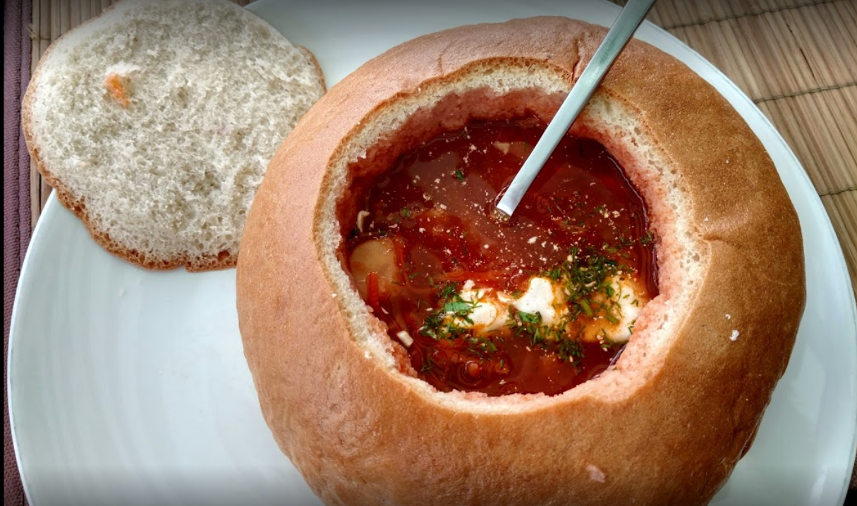 Борщ "борщага" в хлебе и сало - очень вкусно!