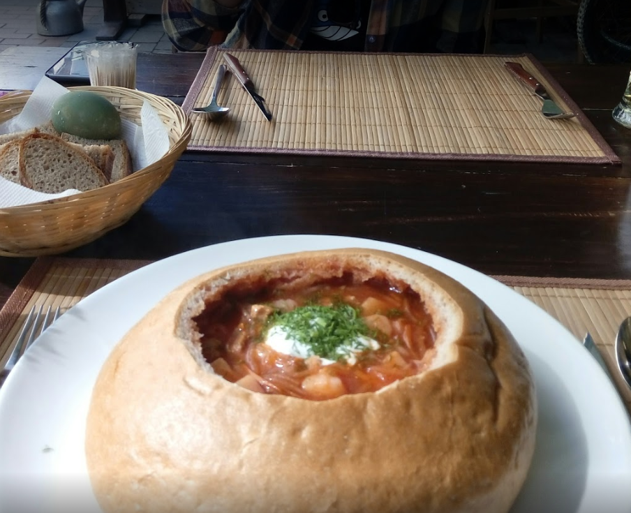 Уже пять лет любимейших место Львова! Борщ в паляныце, комплимент в виде закуски перед заказом - все бомбезно!