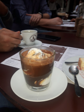 Вишукана кава, велика кількість вибору. Ви можете сісти вниз - тобто в підвалі-шахту або нагорі - кафе, де через величезні вікна можна помилуватися мешканці та туристи, що поспішають вирішити свої справи. Торти добре, але не впадайте на коліна. Це, безумовно, варто відвідати це місце і пити ароматичну каву