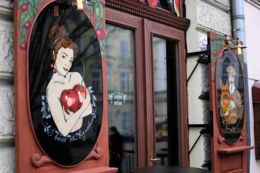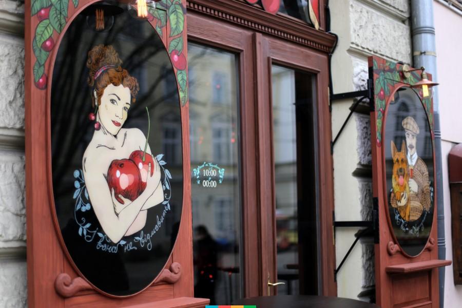 У середмісті Львова, на площі Ринок, розташований маленький винний бар з барною стійкою та декількома столиками «П'яна вишня».