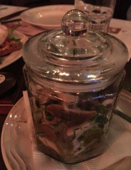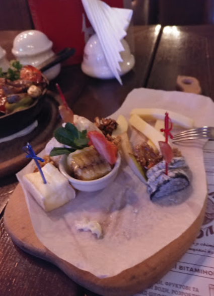 ... интересная еда. Замечательные колбаски, а вот вареники с картофелем подали почему-то жареными во фритюре. А хотелось классики... Хотя, сам виноват, надо было внимательнее читать меню :) Замечательный магазинчик при ресторане - рекомендую попробовать кальвадос. Отличная вещь!
