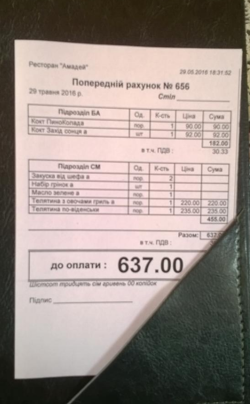 Відгуки про Ресторан "Amadeus" ("Амадеус")