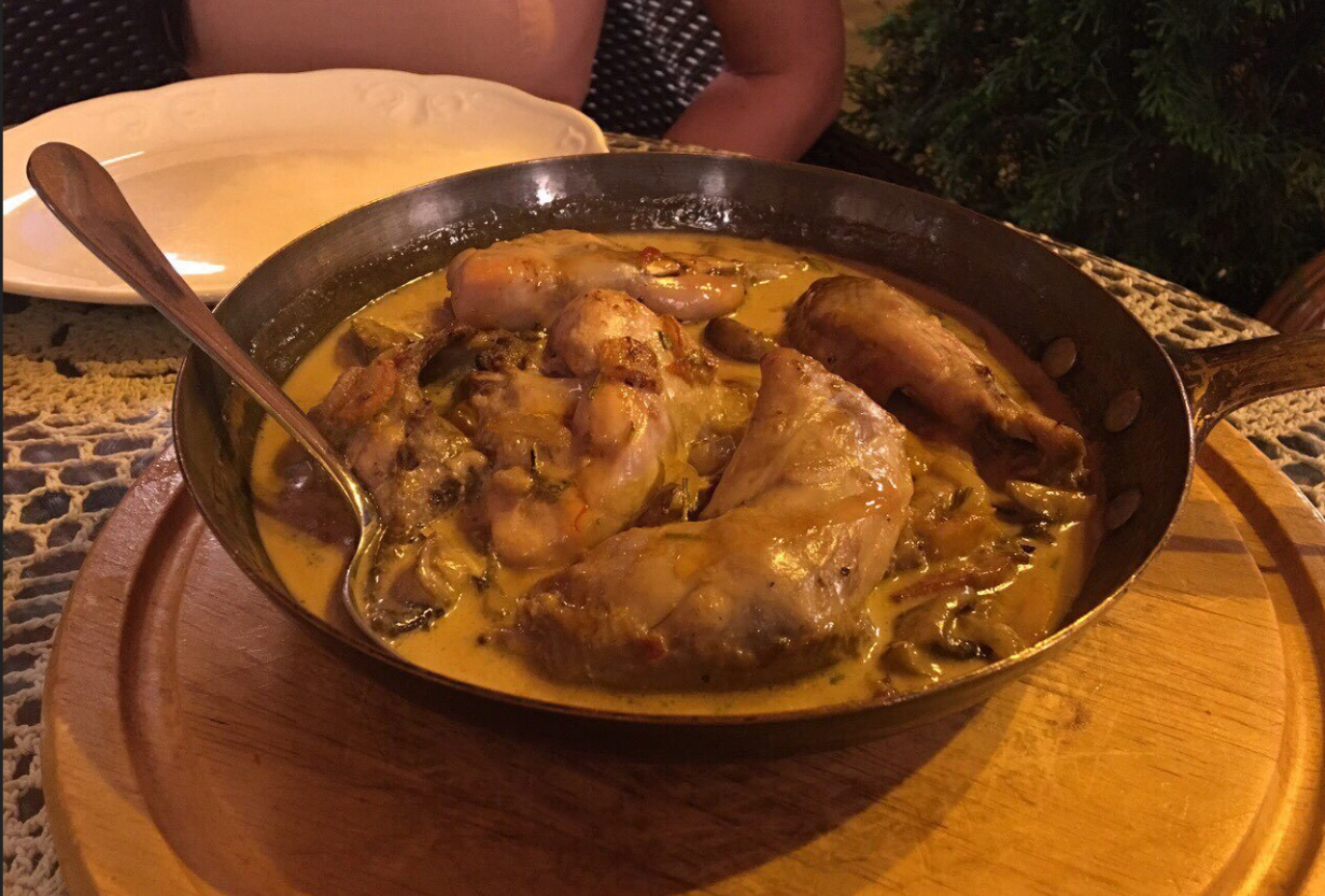 Ужинали с друзьями. Ресторан хороший, порции умеренные, красивый интерьер и само расположение ресторана вроде бы и в самом центре, но улочка тихая. Но вот цены высоковаты.