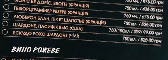 Не похожий ни на один из львовских ресторанов!меню и вибор алкоголя ооооочень удивил!ми довольние остались!официанти помогли с выбором блюд и посоветовали очень вкусное м`ясо!