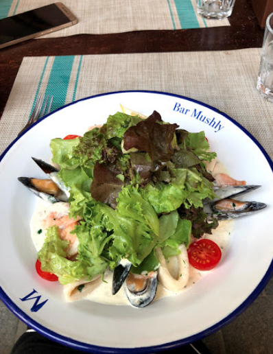 Морепродукти. Дуже багато морепродуктів. А ще сендвіч з куркою. Подається все дуже гарно, ціни відповідні.
