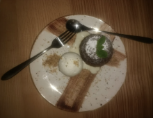 Піци в піцерії в суботу ввечері не було, в салатах, як мені здалося, чи не було заправки, чи так мало що її непомітно було. Фондан був смачний)