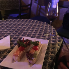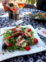 Дуже смачні салати, широкий вибір вина з різних країн на будь-який смак. Рекомендую до вина сирну тарілку:)