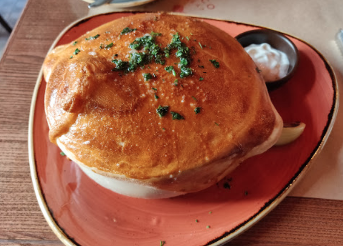 Панський борщ з м'ясом дичини під хрумкою скоринкою