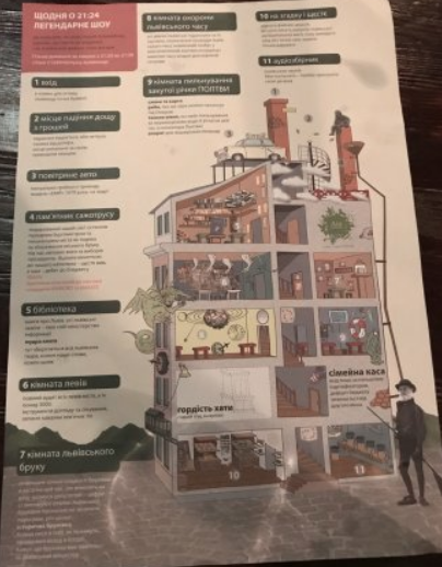 Совершенно неожиданное и колоритное место в центре Львова. Понравилось очень. Каждая комната с разной тематикой: в одной - музей "брука", в другой - фотографии львовских львов... Интересный персонаж встречает на входе - трубочист, позитивный и весёлый дядечка в форме "сажатруса". Вообще, креативчика много - скульптура трубочиста на трубе, машина с вёслами на крыше... Вид с крыши дома прекрасен. Несколько раз в день по фасаду дома ездит вагончик, вечером в 21.00 по львовскому времени (это в 21.24 по "мирскому") оживает дракон. Рекомендую к посещению, позитивное настроение гарантировано!