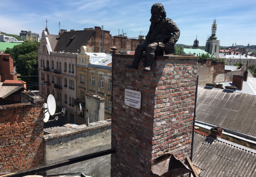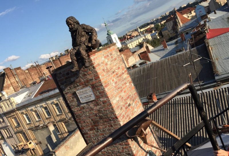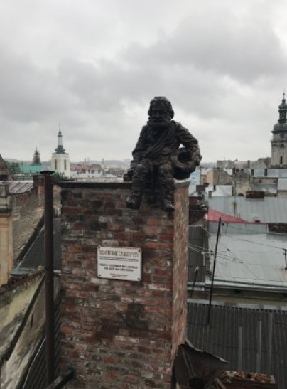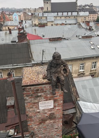 Я приехала во Львов погулять,и друг-львовянин водил меня по достопримечательностям. В Доме Легенд мы сразу поднялись на крышу с целью полюбоваться видом на крыши и сделать колоритные фото. Мне очень понравились и Сажотрус (Трубочист), и Запорожец с веслами, в котором можно фотографироваться, и труба в которую можно забраться, и монеткой в шляпу я попала, когда загадала желание (жаль только забыла, что загадывала - нужно записывать :-)))