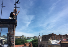 Третий раз приезжаем во Львов и третий раз уходим из этого заведения ни с чем . Каждый раз после смотровой площадки садимся покушать и уходим так и не дождавшись официанта . В этот раз сели на последнем этаже прямо напротив барной стойки. Минут 5 официант девушка просто смотрела на нас . Мы сами подошли попросили принести меню . Смирив взглядом, сказала "зачекайте, вона має віднести пиво за інший столик " . Бармен наливал это пиво еще минут 5 пока она с ним мило беседовала - потом ушла . Тут на горизонте показалась другая девушка официант , но она тоже предпочла нам общение с коллегами на отвелеченные темы . Уже на выходе столкнулись с первой девушкой и сказали "спасибо что подошли " и получили улыбку в ответ и что то не очень приличное когда уже выходили . Так что зайти посмотреть на крышу однозначно да, а вот с остальным ....