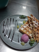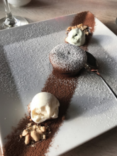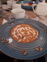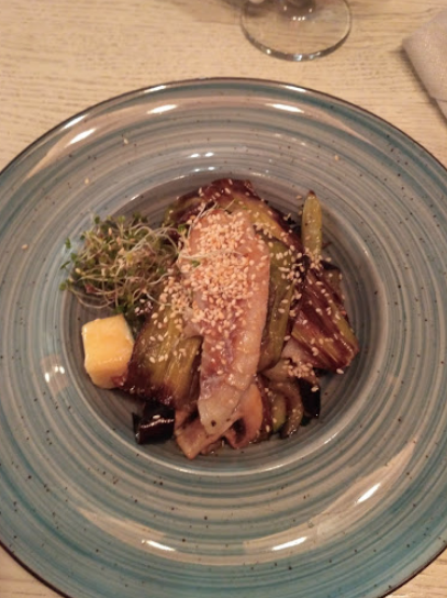 Замовила Суп-пюре зі шпинату та Trota-delicate (філе окуня з овочами). Чекати суп не довго і він цілком смачний, хоч як на мене (це особисте вподобання) забагато вершків. А от окунь : чекати довго, зверху якісь підгорілі незрозумілі волокнисті кусочки, які не жуються , не перемішані крупними, і не розумію що у філе з овочами робив шмат сиру, хоч зауважу що філе було смачним.. Загалом це провал
