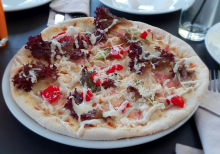 Піца суха та перегоріла, тісто сухе та тверде, шкода бо заклад хороший