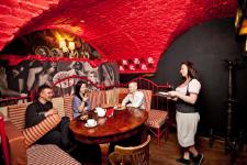 Место на любителя, в меню очень мало еды в основном закуски к пиву , официанты уж очень молодые для такого заведения , место конечно очень необычное в своем дизайне и с тематикой ,но тесное. За не долгое время провождения в кафе наблюдали как парня били плёткой и он ,,мявкал,, и в соседнем зале завязали девушке глаза, раздели до лифчика одели ошейник и намазали парня сливками и официантка контролировала чтоб девушка слизала сливки , если ваша психика не травмируется подобными сценами то конечно место стоит посетить ,но второй раз я бы туда не пошла