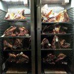 Заказал стейк Нью-Йорк на кости сухой выдержки, rare. Очень вкусно. Но похоже общая проблема для стран, где не так давно культура стейков появилась. Я бы сказал, что это даже не medium rare, а просто medium, крови не было. Не знаю как здесь, но в некоторых местах разговаривал, говорят люди заказывают, а потом сами жалуются. :-) :-) :-)