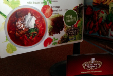зашел сюда лишь потому, что увидел на фасаде своё фото борща, которое они явно из интернета стащили без моего разрешения. сам борщ, кстати, совершенно невкусный и выглядит совсем иначе, чем на рекламе.