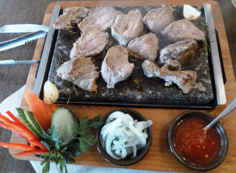 Вкусная кухня и необычная подача блюда - телятина на разогретом камне)))