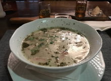 На этом все хорошее заканчивается. Да,ещё терасса и симпатичный интерьер. Обслуживание хромает. Настойки так себе. Еда посредственная - вкусным был только борщ. Рыбу не берите - есть можно,но удовольствия никакого. Единственно-худший ресторан за неделю в Украине(Киев,Буковель и Львов).
