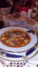 Чтобы сориентировать тех, кто все же сомневается. Мы заказали 2 первых блюда, 2 настойки, бокал немецкого красного вина, целое блюдо еврейских закусок (оооочень вкусные), и огромную сковородку запеченного карпа, фаршированного грибами (на фото). Вот это обошлось всего в 600 грн.