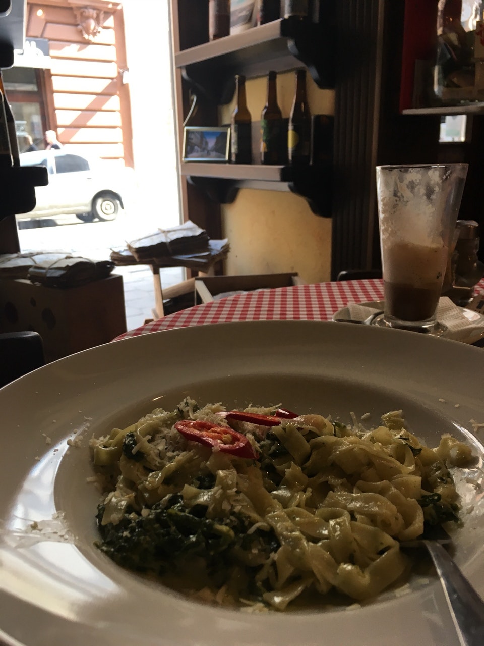 Оригинальное сочетание кофе, пасты и почты)) очень уютное кафе в сердце города. Кстати тесто для пасты делают прямо у вас на глазах, а также можно купить сырые макаронные изделия где то за 30-35грн.