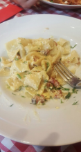 Специализация заведения - паста. Само тесто очень вкусное и нежное но вот Заправка у молочной пасты с курицей и грибами не хватило сочности. Такое ощущение что заправку для пасты делают за ранее - курица суховатая, а молочной заправки маловато. Обычно паста более жидкая.