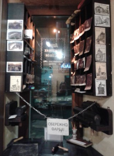 В оформлении интерьера использовано около 2000 открыток издания 1897-1944 гг. Также, есть аппарат для изготовления открыток своими руками (мастер работает с чт по вс, цена за шт - 40грн.). Кухня открыта, можно наблюдать за приготовлением.