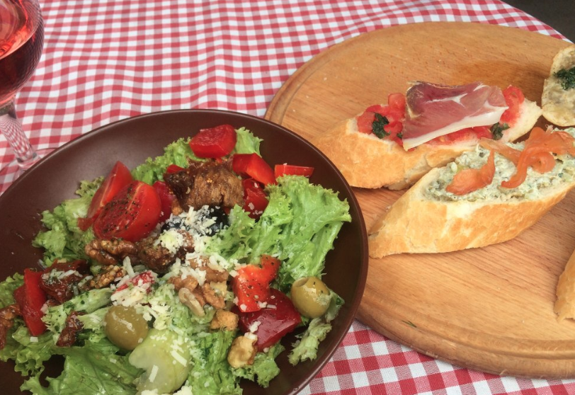 Колоритное местечко. Салат с инжиром не вкусный. Сет брускет на любителя. Форель с садом вкусная. Домашнее белое вино вполне. Обслуживание быстрое.
