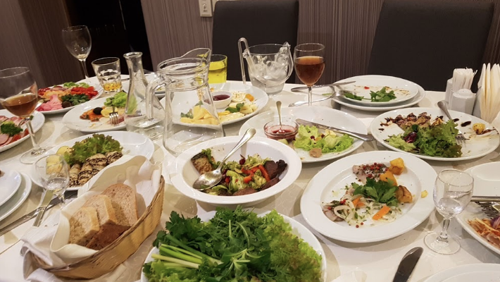 Великі зали. Добре для великих замовлень, корпоративів. А от посидіти не дуже великою компанією окремо не вдасться. Була тут власне з такою компанією (20 чол). Нам з'єднали столи, але крім нас ще святкували поруч приблизно такою ж компанією день народження і інша компанія чоловік на 15 теж сиділа в тому ж залі за з'єднаними столами. Так всі разом за великими об'єднаними столами і сиділи.