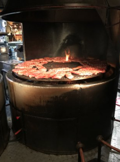 Впечатляет антураж ресторана: открытые печи с решетками, в которых на огне жарятся ребра.