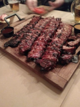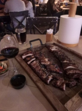 Попасть в заведение не так легко, надо занимать очередь. Вид рёбер один, но это и задачу упрощает, и они настолько вкусные - пальчики оближешь (в буквальном смысле этого слова, так как посуда не подаётся, трапеза осуществляется руками в бумажном переднике). Брать можно смело 2 доски на троих, так чтоб и хватило, и не объесться))) Людей много, но это и не удивительно, самый вкусные рёбра, что я пробовала!