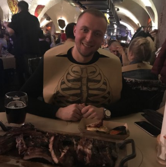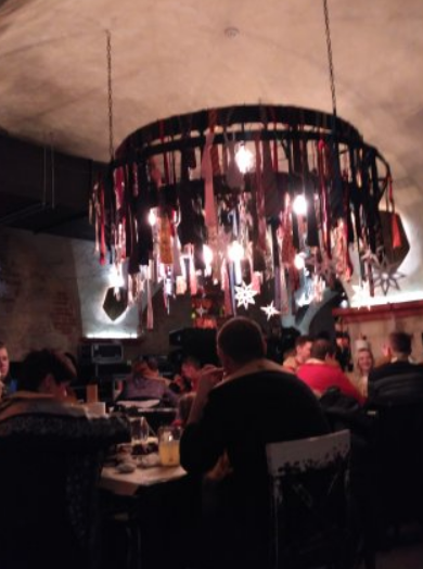 Сюда мы заходили ежедневно в наши 3 дня во Львове. Вкусно. Прикольно. Уютно. Фартуки из бумаги, скатерти бумажные, рулон полотенец на столе, вилки, тарелки нарисованные)) официанты приятные, с юмором. Заказ принесли быстро. рёбрышки тают во рту.... Мммм..