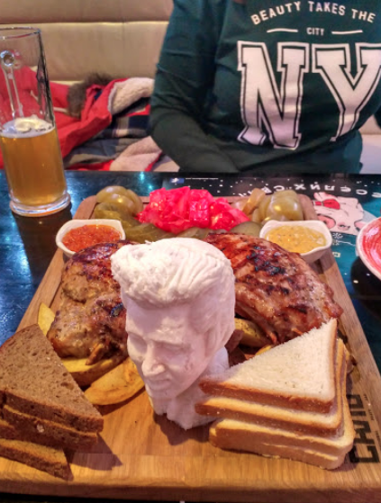 Очень колоритно.Всем любителям сала не может не понравиться.Десерт Губы Мэрилин Монро рекомендую.