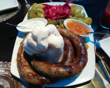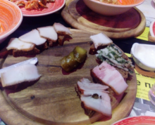 Перебор розмарина в бограче(не пережевать),не было мяса.Ассорти сала(14 видов) с жёсткой шкуркой(не прожевать).Фигурка из сала оказалась фигуркой из жира.Порций большие. Всё вкусно!