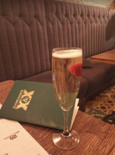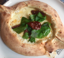 Божественное хачапури (огромных размеров) и шампанское. Очень необычно, но однозначно круто! Цены доступные, еда вкусная, подача быстрая. Заведением маленькое и уютное. Очень понравилось! Следующий раз будем пробовать хот доги под шампанское.
