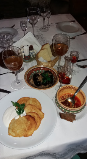 Дуже смачний борщик. Вареники нічого так. Цікавий інтер'єр, в одному залі є камін із справжнім багаттям. Не погане обслуговування, як для Львова, але і ціни вище середнього