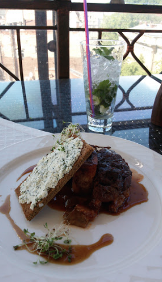 Шикарний ресторан в центральній частині міста. Велика тераса з якої відкривається гарний краєвид на весь центр міста. В ресторані хороший вибір страв холодні гарячі закуски. Перші другі страви та десерти. Велика винна карта. Оформлення трав дуже гарне. І апетит збуджуєттся ще більше від самого вигляду страв. Все дуже класно.